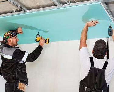Instalações seguras e eficientes utilizando placas de drywall para tetos e paredes, conforme o design desejado.