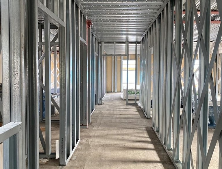 Paredes e tetos fortes com steel frame para drywall. Execução para casa, apartamento ou comércio, elaboradas com precisão.